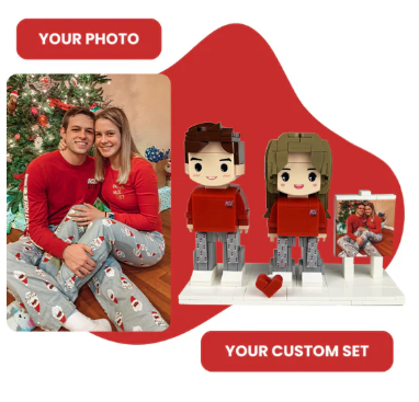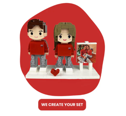 Simply upload a photo when placing your order. Our team will turn your image into a custom brick-style figure set that captures the look, outfits, and details from your photo.